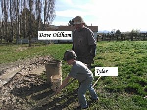 David Oldham observing Tyler while keeping the sludge away from the driller’s feet.